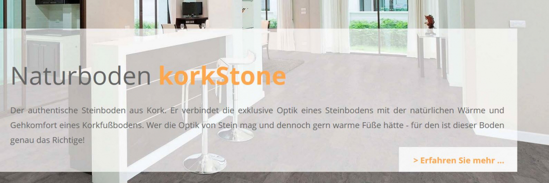 Der authentische Steinboden aus Kork. Er verbindet die exklusive Optik eines Steinbodens mit der natürlichen Wärme und Gehkomfort eines Korkfußbodens. Wer die Optik von Stein mag und dennoch gern warme Füße hätte - für den ist dieser Boden genau das Richtige!