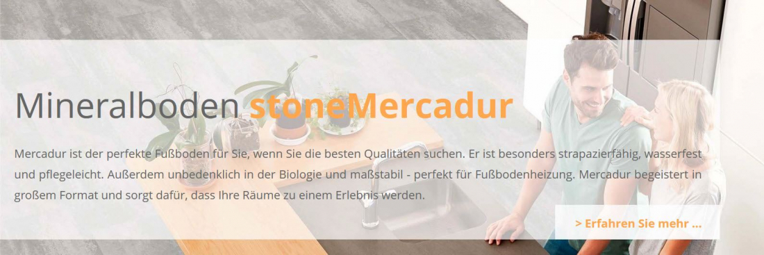Mercadur ist der perfekte Fußboden für Sie, wenn Sie die besten Qualitäten suchen. Er ist besonders strapazierfähig, wasserfest und pflegeleicht. Außerdem unbedenklich in der Biologie und maßstabil - perfekt für Fußbodenheizung. Mercadur begeistert in großem Format und sorgt dafür, dass Ihre Räume zu einem Erlebnis werden.