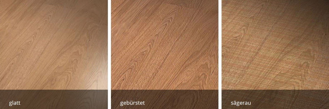 Die Oberflächenstruktur ihres Traumbodens fertigen wir ganz nach Ihren Wünschen in drei Variationen. Auf diese Weise entsteht ein individuelles Meisterwerk, das exklusiv für Sie gefertigt wird.
