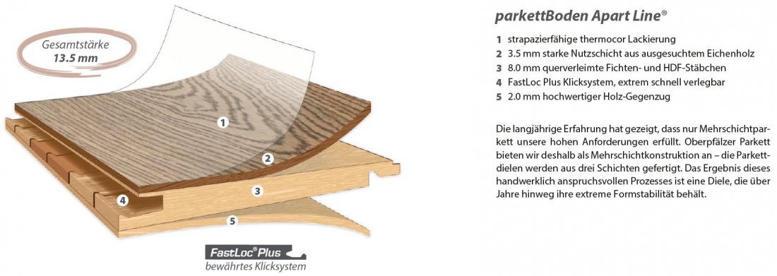 In der Anwendung werden Ihnen unsere apartLine parkettBöden viel Freude bereiten, denn sie sind dauerhaft stabil, leicht zu reinigen und für ihr Zuhause bestens geeignet.