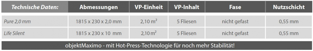 Unsere objektMaximo vinylBöden überzeugen mit hoher Strapazierfähigkeit und extra großen Abmessungen. Sie sind die perfekte Lösung für alle Anforderungen ob bei Ihnen Zuhause oder im Gewerbe.
