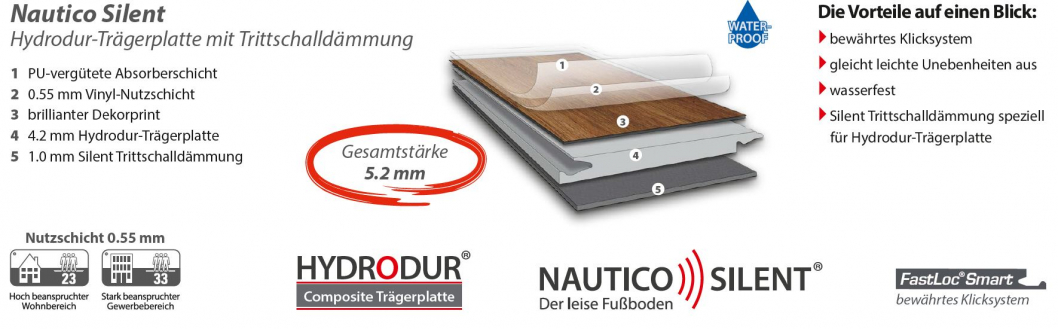 samurai überzeugt in allen Anforderungen und ist besonders geräuscharm durch die integrierte NauticoSilent Trittschalldämmung.