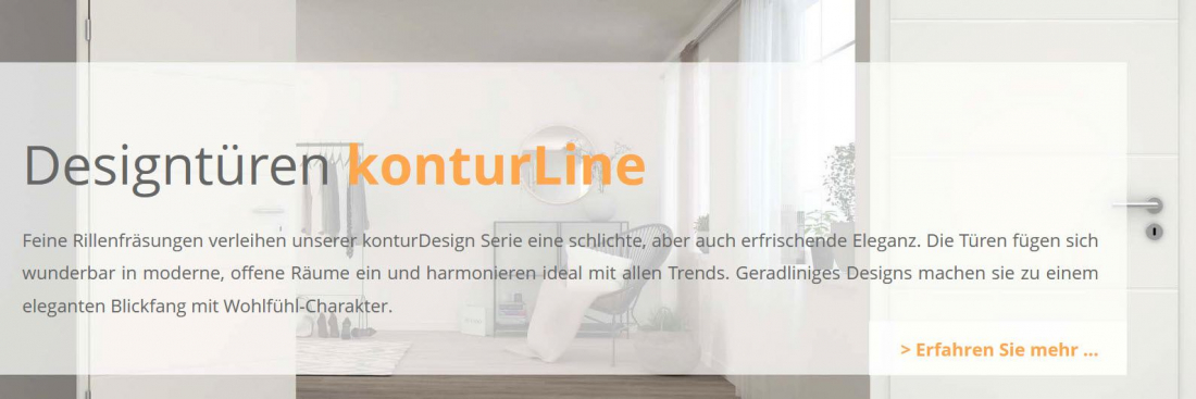 Feine Rillenfräsungen verleihen unserer konturDesign Serie eine schlichte, aber auch erfrischende Eleganz. Die Türen fügen sich wunderbar in moderne, offene Räume ein und harmonieren ideal mit allen Trends. Geradliniges Designs machen sie zu einem eleganten Blickfang mit Wohlfühl-Charakter.