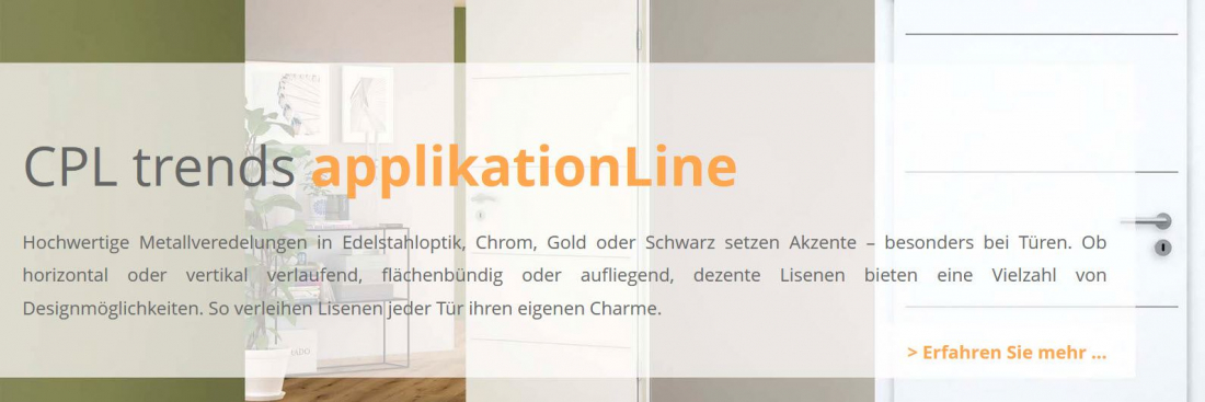 Hochwertige Metallveredelungen in Edelstahloptik, Chrom, Gold oder Schwarz setzen Akzente – besonders bei Türen. Ob horizontal oder vertikal verlaufend, flächenbündig oder aufliegend, dezente Lisenen bieten eine Vielzahl von Designmöglichkeiten. So verleihen Lisenen jeder Tür ihren eigenen Charme.