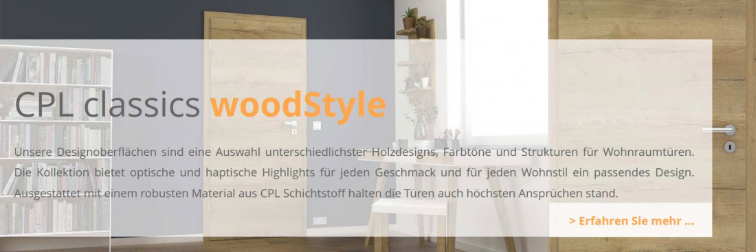 Unsere Designoberflächen sind eine Auswahl unterschiedlichster Holzdesigns, Farbtöne und Strukturen für Wohnraumtüren. Die Kollektion bietet optische und haptische Highlights für jeden Geschmack und für jeden Wohnstil ein passendes Design. Ausgestattet mit einem robusten Material aus CPL Schichtstoff halten die Türen auch höchsten Ansprüchen stand.