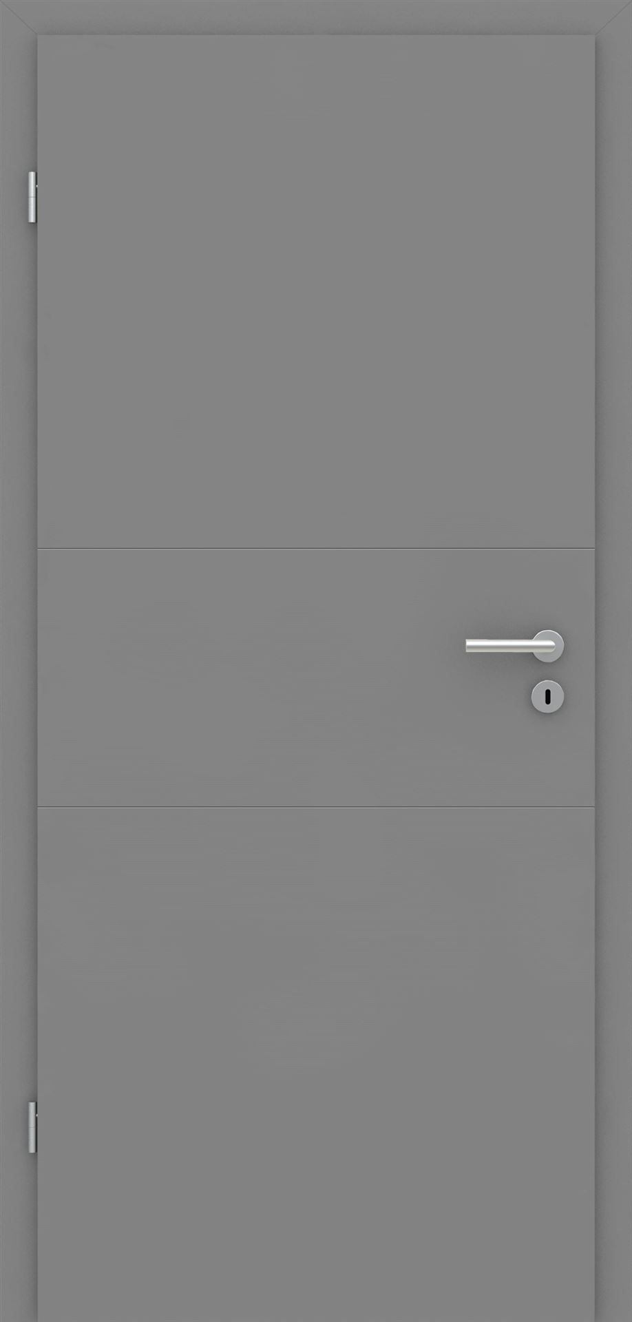 Entdecken Sie unser Meisterwerk des Designs: Die Mineralgraue Designtür Florenz besticht durch feinste Details und einzigartige Eleganz. Dezente 3mm breite Rillen verleihen ihr eine schlichte, aber erfrischende Optik und sorgen für eine harmonische Ästhetik. Der zeitlose Farbton Mineralgrau, ähnlich RAL 7037, setzt einen faszinierenden Blickfang, der die Liebe zum Grau weckt. Das Türblatt ist mit einer lackierten Oberfläche versehen, die das Design perfekt abrundet.