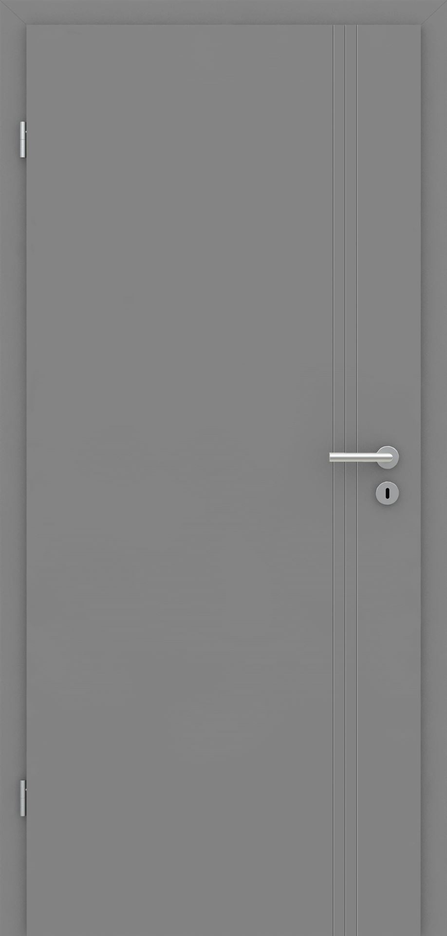 Entdecken Sie unser Meisterwerk des Designs: Die Mineralgraue Designtür Florenz besticht durch feinste Details und einzigartige Eleganz. Dezente 3mm breite Rillen verleihen ihr eine schlichte, aber erfrischende Optik und sorgen für eine harmonische Ästhetik. Der zeitlose Farbton Mineralgrau, ähnlich RAL 7037, setzt einen faszinierenden Blickfang, der die Liebe zum Grau weckt. Das Türblatt ist mit einer lackierten Oberfläche versehen, die das Design perfekt abrundet.
