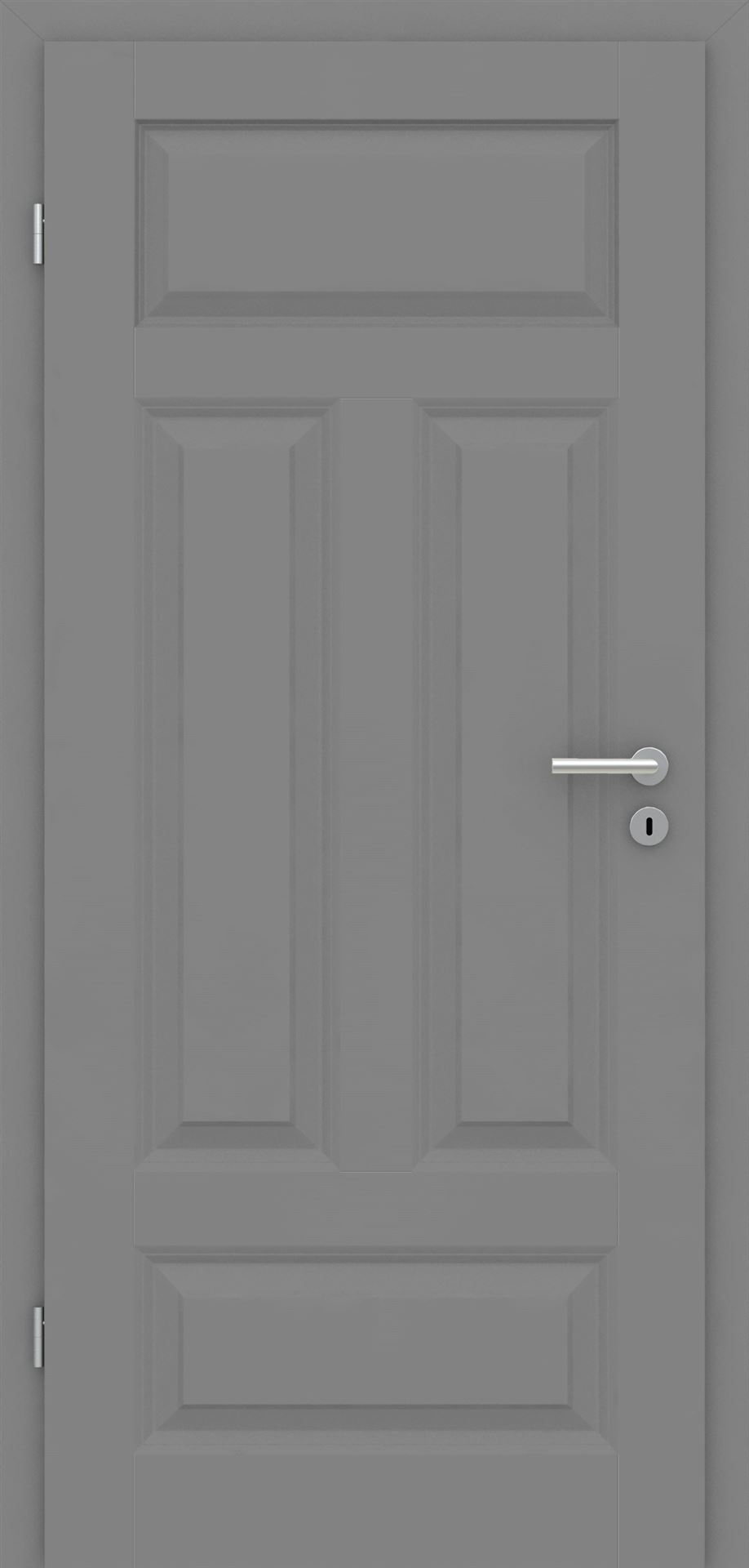 Entdecken Sie die Schönheit eines strahlenden Farbtons jenseits von Weiß mit unserer Wohnraumtür Hamburg. Die klassische Stiltür vereint sich hier mit der zeitlosen Lackoberfläche in Mineralgrau, ähnlich RAL 7037. Ein harmonischer Design-Kontrast, der überzeugt. Diese exklusive Interpretation des Klassikers präsentiert sich mit formgeprägten Kassetten die dem Design besonders viel Tiefe verleihen.