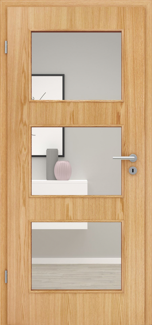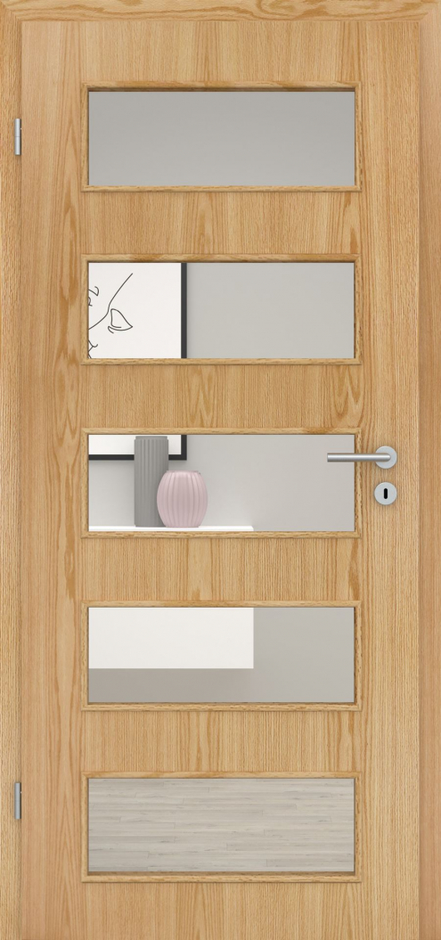 Die perfekte Kombination zu den Türblättern dieser Serie sind die in Design und Funktion abgestimmten Lichtausschnitte. Diese können wahlweise mit verschiedenen Verglasungen ganz nach Ihren Wünschen gestaltet werden.
