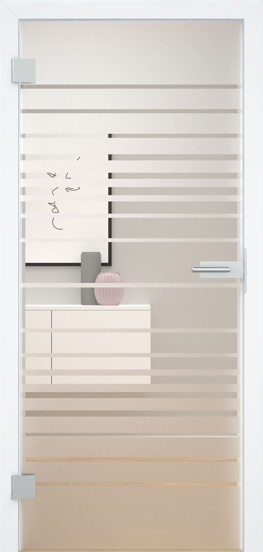 Die ideale Ergänzung zu geschlossenen Türelementen sind unsere passenden Ganzglastüren.