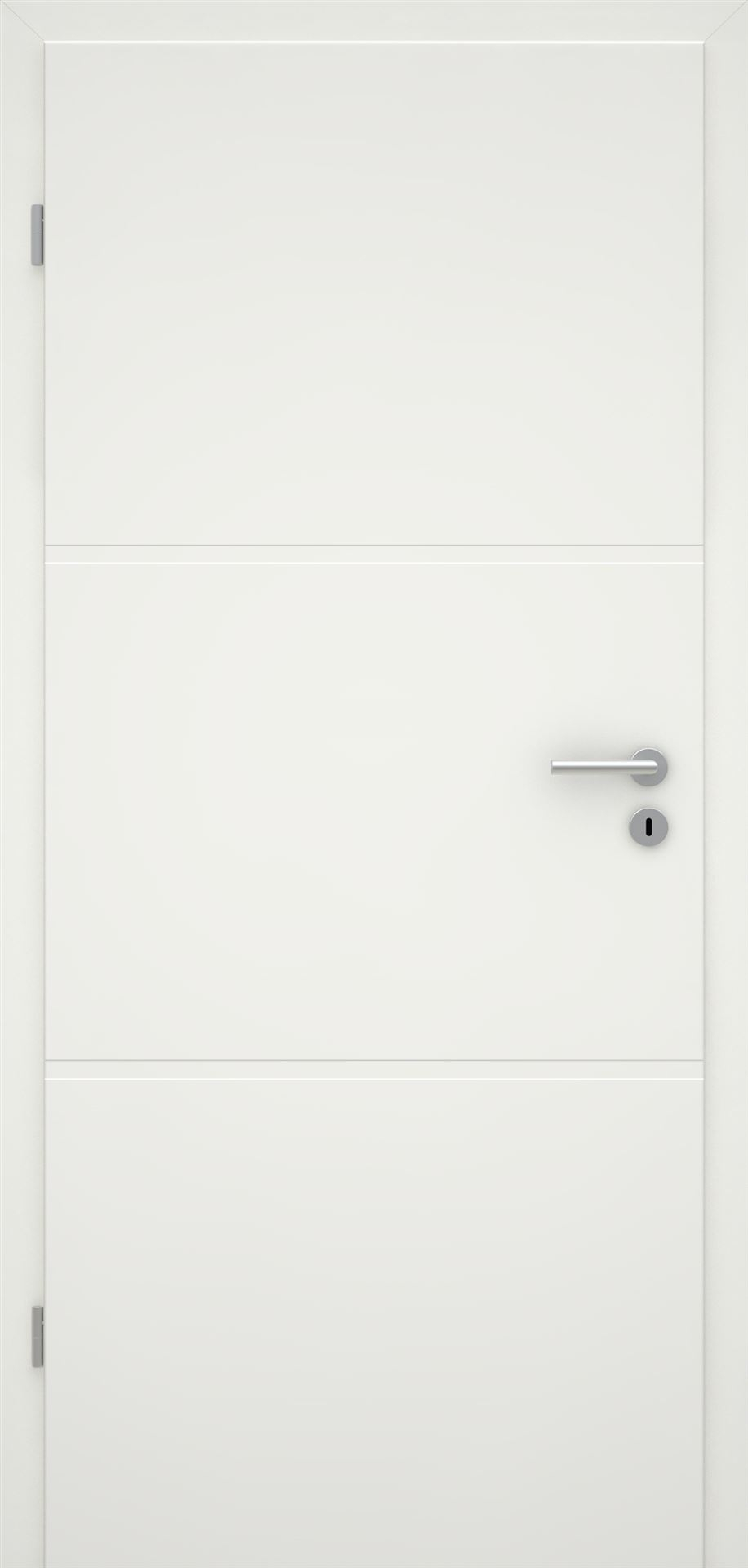 Unsere weißen Innentüren siena überzeugen mit ausdrucksstarker Formgebung und einer Lackoberfläche in Weißlack 1.0, angelehnt an RAL 9010. Markante Rillenfräsungen setzen Akzente und harmonieren zugleich mit verschiedenen Wohnstilen. Die Designtür verfügt über 25 mm breite Rillen die Eleganz und Exklusivität zugleich vermitteln. Ihr rechtwinkliges Türblatt betont dabei gekonnt die geradlinige und zeitlose Ästhetik.