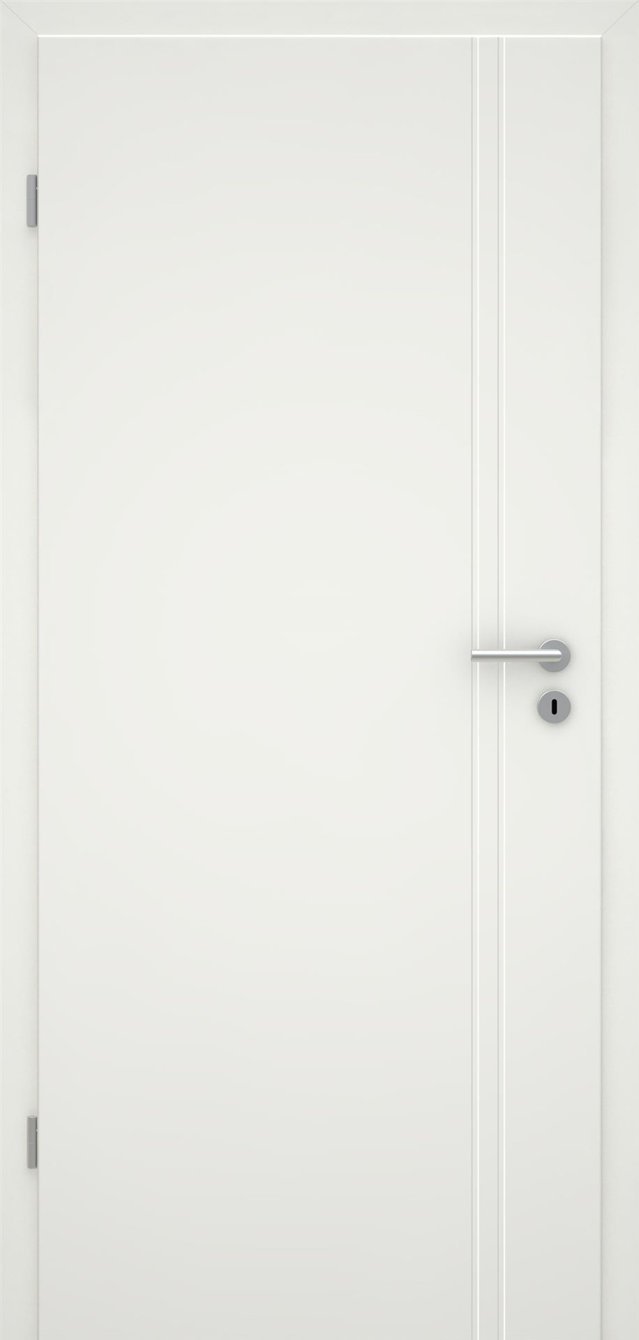 Geradliniges Design, kombiniert mit einer matt-weiß schimmernden Lackoberfläche in Weißlack 1.0, inspiriert von RAL 9010, macht sie zu einem eleganten Blickfang mit Wohlfühlcharakter und einer der beliebtesten weißen Innentüren. Die Designtür Verona verfügt über 10 mm breite Rillen, die für eine harmonische Optik sorgen. Das rechtwinklige Türblatt betont perfekt das geradlinige und zeitlose Design.