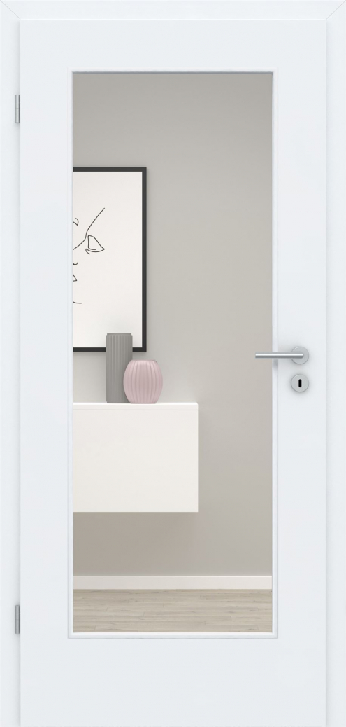 Die ideale Ergänzung zu einem geschlossenen Türblatt sind unsere passenden Türblätter mit Lichtausschnitten oder Ganzglastüren.