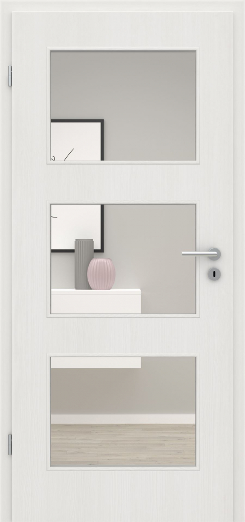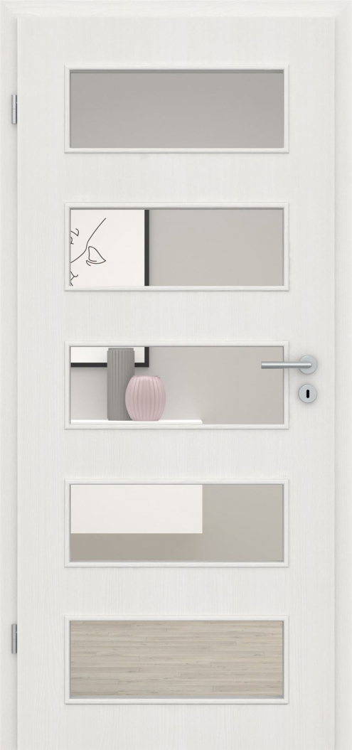 Die perfekte Kombination zu den Türblättern dieser Serie sind die in Design und Funktion abgestimmten Lichtausschnitte. Diese können wahlweise mit verschiedenen Verglasungen ganz nach Ihren Wünschen gestaltet werden.