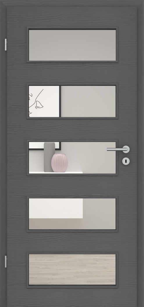 Die perfekte Kombination zu den Türblättern dieser Serie sind die in Design und Funktion abgestimmten Lichtausschnitte. Diese können wahlweise mit verschiedenen Verglasungen ganz nach Ihren Wünschen gestaltet werden.