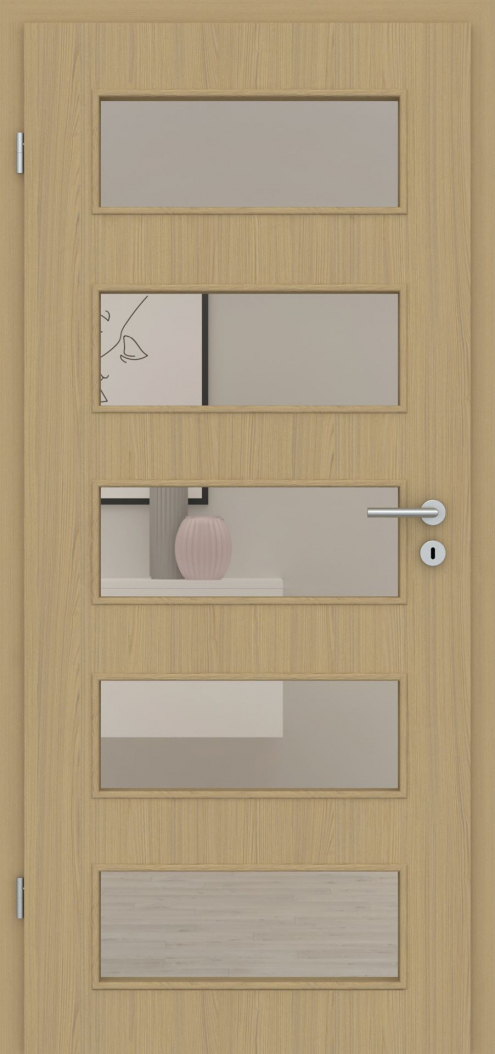 Die perfekte Kombination zu den Türblättern dieser Serie sind die in Design und Funktion abgestimmten Lichtausschnitte. Diese können wahlweise mit verschiedenen Verglasungen ganz nach Ihren Wünschen gestaltet werden.