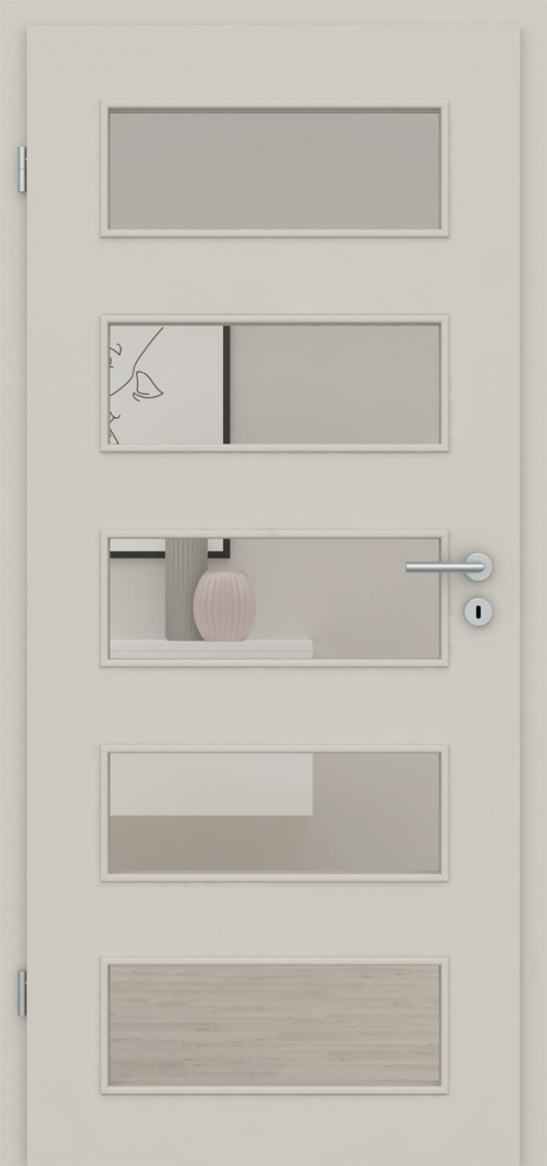 Die perfekte Kombination zu den Türblättern dieser Serie sind die in Design und Funktion abgestimmten Lichtausschnitte. Diese können wahlweise mit verschiedenen Verglasungen ganz nach Ihren Wünschen gestaltet werden.