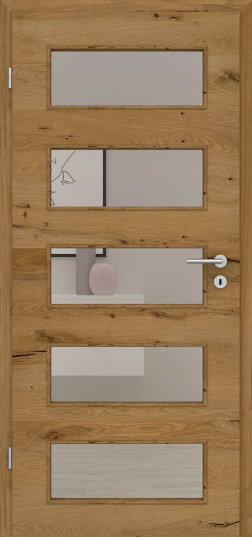 Die perfekte Kombination zu den Türblättern dieser Serie sind die in Design und Funktion abgestimmten Lichtausschnitte. Diese können wahlweise mit verschiedenen Verglasungen ganz nach Ihren Wünschen gestaltet werden.