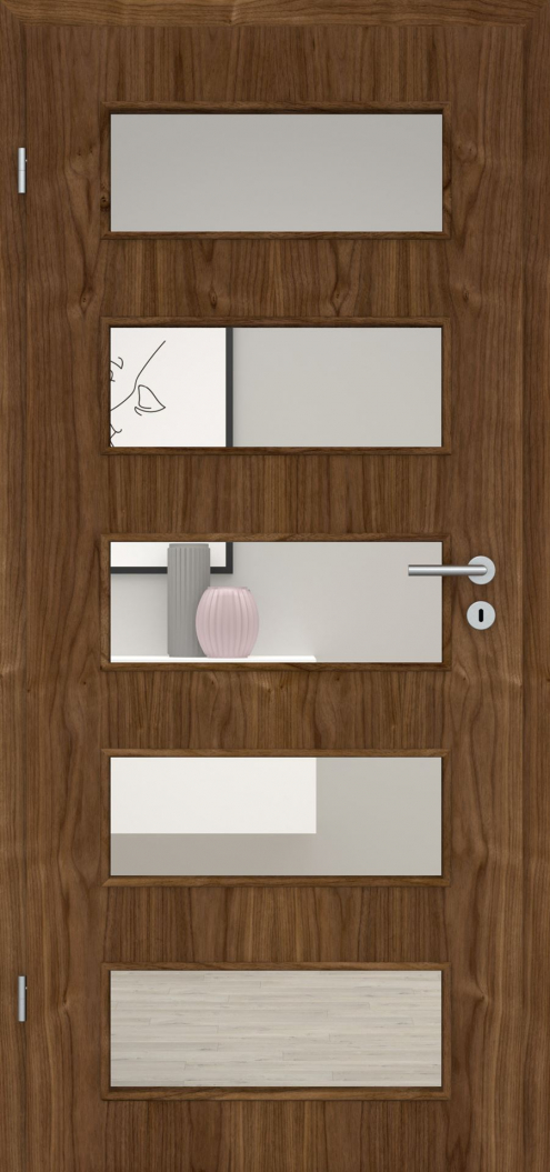 Die perfekte Kombination zu den Türblättern dieser Serie sind die in Design und Funktion abgestimmten Lichtausschnitte. Diese können wahlweise mit verschiedenen Verglasungen ganz nach Ihren Wünschen gestaltet werden.