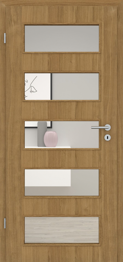 Die perfekte Kombination zu den Türblättern dieser Serie sind die in Design und Funktion abgestimmten Lichtausschnitte. Diese können wahlweise mit verschiedenen Verglasungen ganz nach Ihren Wünschen gestaltet werden.