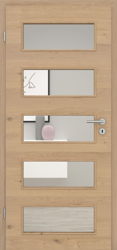 Die perfekte Kombination zu den Türblättern dieser Serie sind die in Design und Funktion abgestimmten Lichtausschnitte. Diese können wahlweise mit verschiedenen Verglasungen ganz nach Ihren Wünschen gestaltet werden.