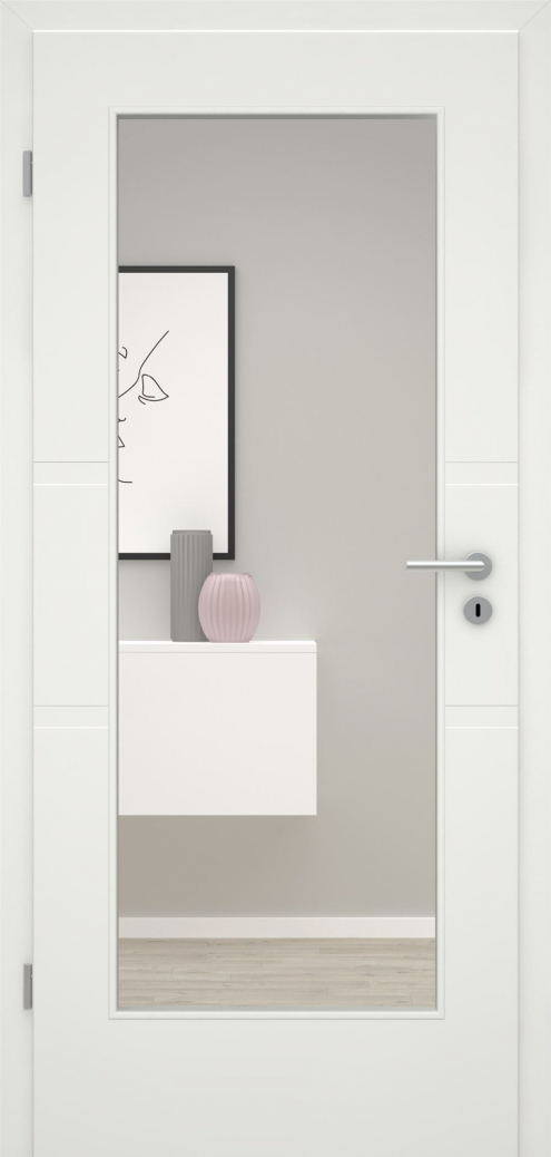 Die breiten Rillen mit 40 mm verleihen den Türen ein edles und dennoch schlichtes Design, perfekt für zeitgemäße Raumkonzepte. Kombinieren Sie ganz nach Ihren Wünschen mit passenden Lichtausschnitten oder Ganzglastüren.