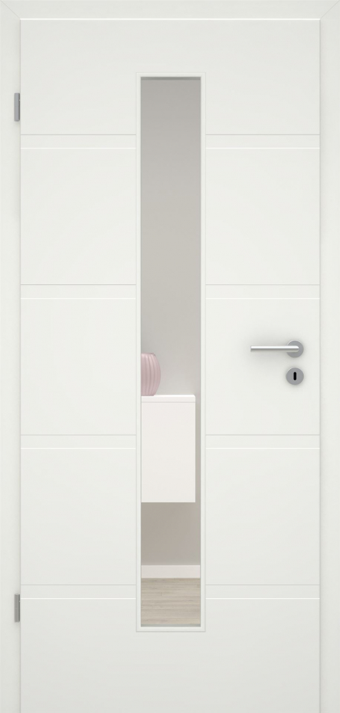 Die breiten Rillen mit 40 mm verleihen den Türen ein edles und dennoch schlichtes Design, perfekt für zeitgemäße Raumkonzepte. Kombinieren Sie ganz nach Ihren Wünschen mit passenden Lichtausschnitten oder Ganzglastüren.