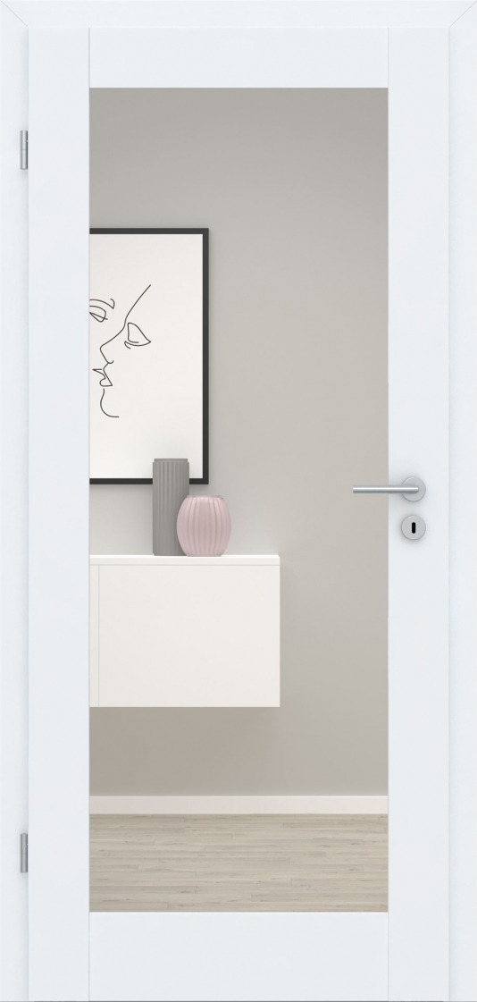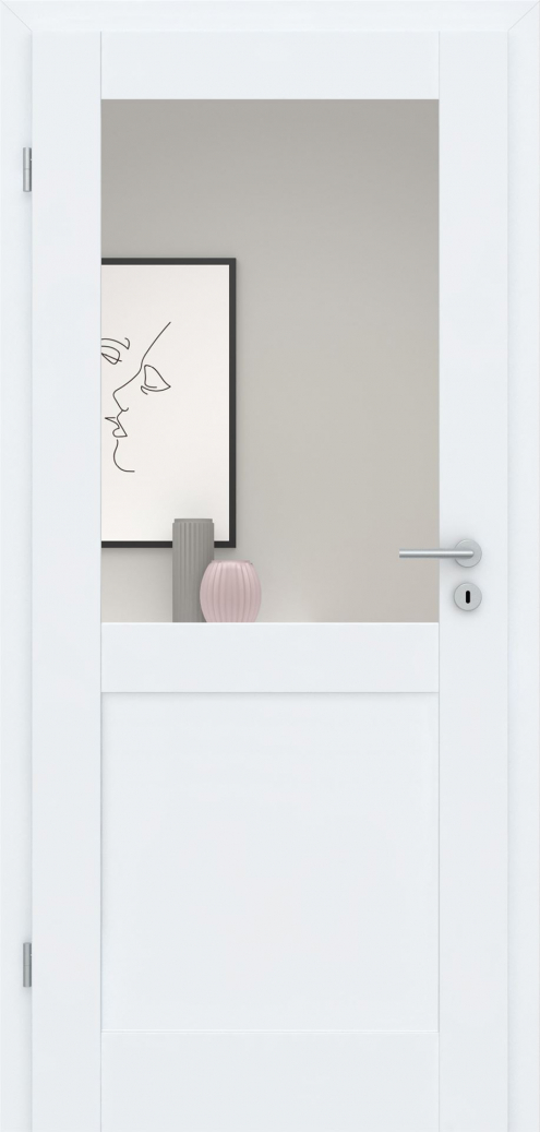 Die ideale Ergänzung zu einem geschlossenen Türblatt sind unsere passenden Türblätter mit Lichtausschnitten oder Ganzglastüren.